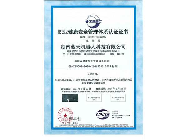 職業(yè)健康安全管理體系認證證書